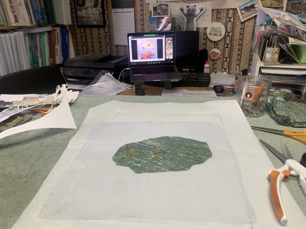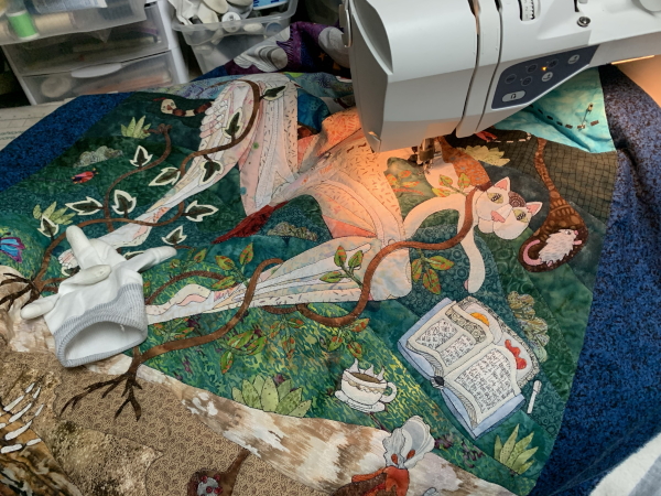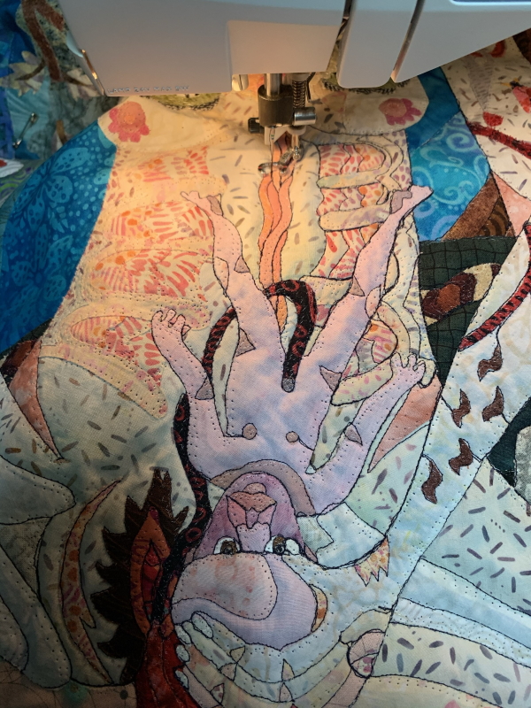 Tons more hand stitching, plus machine stitching, plus IDK what else. A fun way to spend the day, anyway. I appreciate the online opportunities to hang out and do fabric stuff I’ve never done before. I don’t need more projects to finish, but there’s something really important in looking at your art in a different way, and looking at other people’s art. I miss that with no exhibits I can go to right now…or maybe just a few? Visions isn’t open…but I guess the show up at Front Porch Gallery has limited hours. Maybe next weekend.