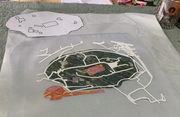 The map lines use a fabric-cutting machine. My mom only has 2 or 3 of those. Not that I need to do maps. I was thinking scribbles and letters and cursive writing. But I do like maps.