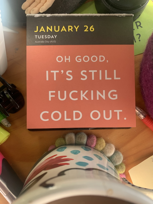 OK, it’s cold for San Diego, sunny Southern California. We were down to 37 or so last night. I’m thankful for down blankets, socks, and cats. I don’t do cold well. I just get cold and stay cold. I don’t have the right clothes; I know.