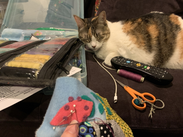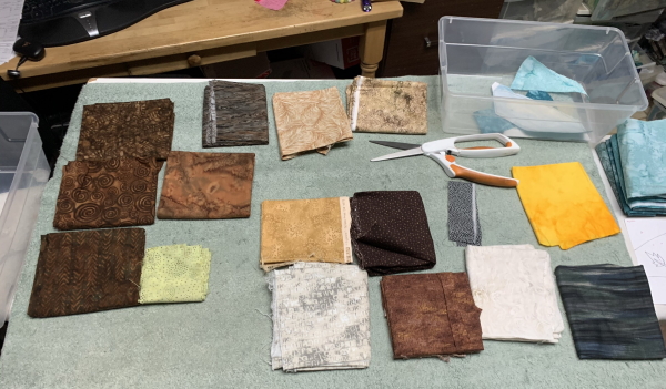Saturday night, I ironed all the fabrics for the tiny owl quilt I’m making…