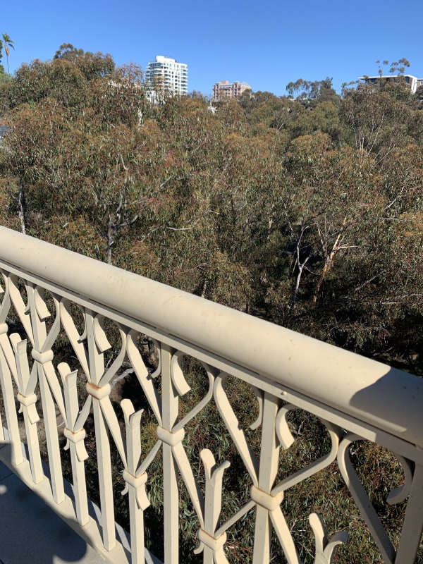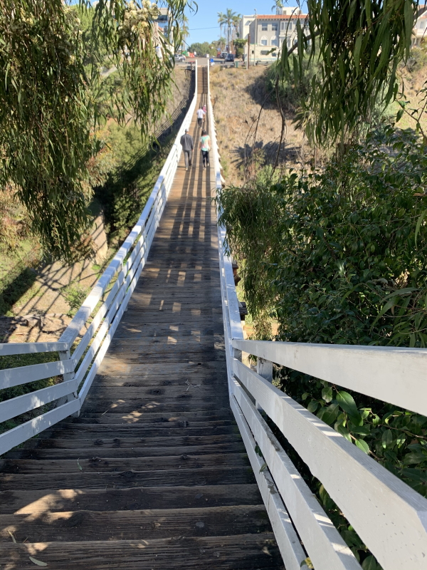 I wanted to hike Saturday, but with all the rain on Friday (we got over an inch in 24 hours, which is a lot for us), we didn’t want to stomp through a muddy trail and destroy it, so we picked an urban hike, the Seven Bridges Trail. I’ve done it a couple of times, but the Man hadn’t. It starts in Balboa Park, where there were lots of people…