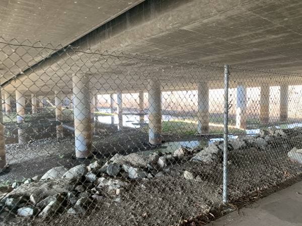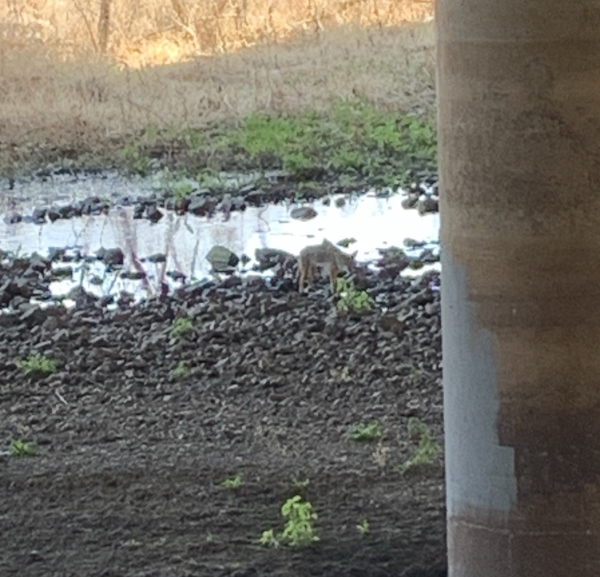 There was a coyote, a very skinny one, under the freeway bridge on the way back.