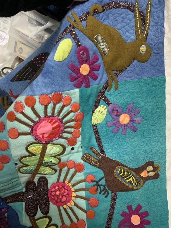 I’ve been quilting the Sue Spargo block-of-the-month from a million years ago…wool is not so hard, apparently. Nah, it’s really soft and mostly forgiving.