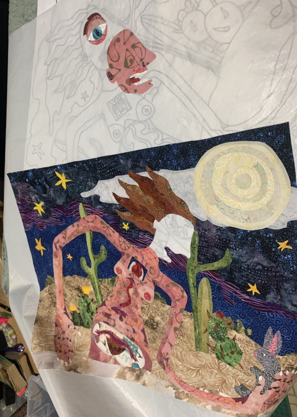 There wasn’t much left…one arm and hand, a bunny, the base dirt, and the head. I ironed the face and eyeball separately. It’s easier to see them that way and then just place them on top.