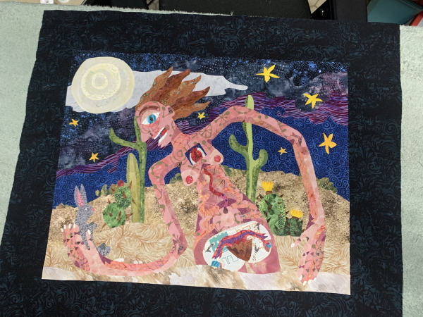 Total ironing time on this was 3 hours and 21 minutes. A chunk of that was trying to find a background fabric for it.