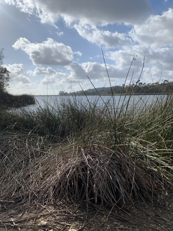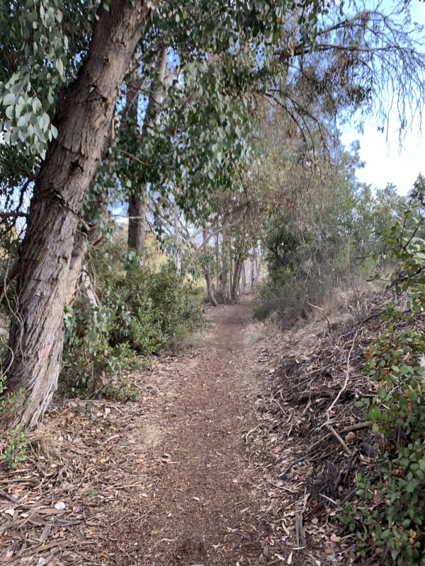 Lake Miramar has a dirt trail below the paved trail for most of the distance around the lake. Most? At least half.