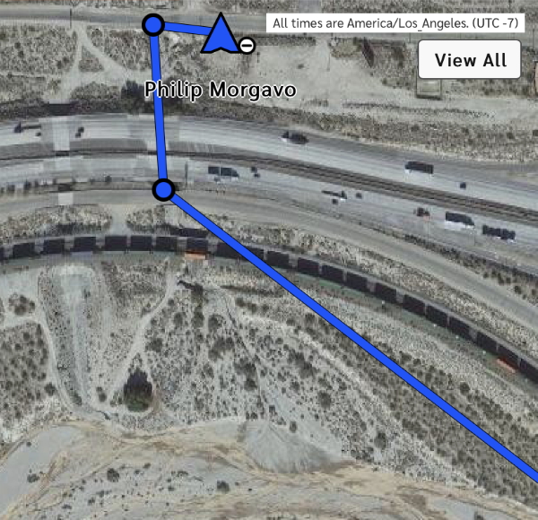 Sometimes the Garmin gives some pretty amazing pictures. He did go UNDER the freeway. He’s in a town now, waiting for his appointment. Hopefully he’ll feel OK tomorrow and will be able to get back on the trail. I know yesterday was rough…over 19 miles down 5200 feet or so through a burn zone with limited water. In the heat. Certainly a challenge. I’m proud of him for doing this, even if I miss him tons.