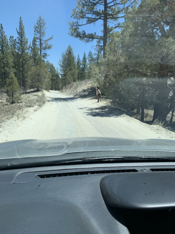 2.3 miles, where the PCT crosses, I found the man. He was kinda dirty and a little smelly (actually not too bad, considering), and has lost a lot of weight.