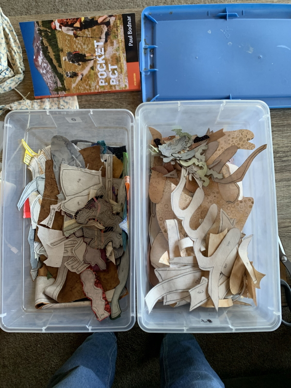 The man did some planning and spacing out and talking and I did some cutting out of the new art quilt…