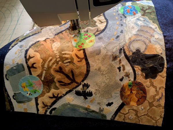 Meanwhile, the artmaking has been walloped by my sewing machine being a total asshole. I did most of the stitchdown on Saturday…