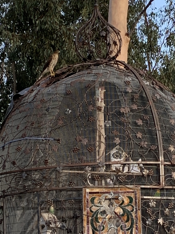 I also walked last night…that hawk was harassing all the birds inside this amazing cage I walk by.