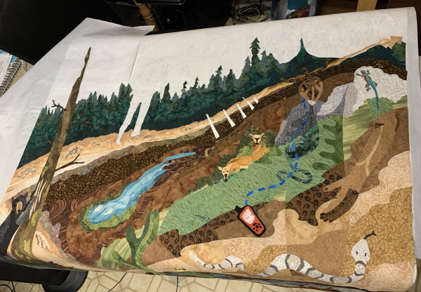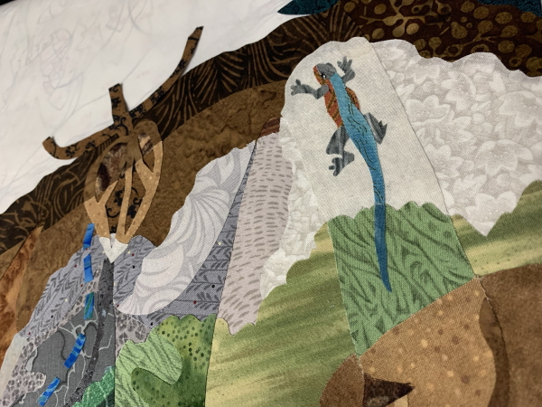 It went much faster. It’s going to get fussy again with the man hiking through and with the face that’s hidden in the trees on the right, but that’s OK…because it will be the weekend by the time I get to those. I’d really like to finish ironing this together this weekend. I have a deadline I’m looking at and now it’s tight. It’s OK if this isn’t done by then, but it’s a goal. We’ll see. Time flies when your day job sucks up all the moments.