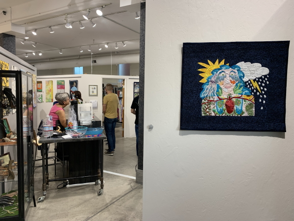 You can see three of my pieces in this photo. The man took pictures of me with some of the work. I’ll post those later. For now, I need to leave early for school because we couldn’t plan science yesterday and there’s a new unit coming up and I know we can get it all together, but IDK if we can get it all together before I need to print a table of contents for the kids. Minor issue. We will all survive.