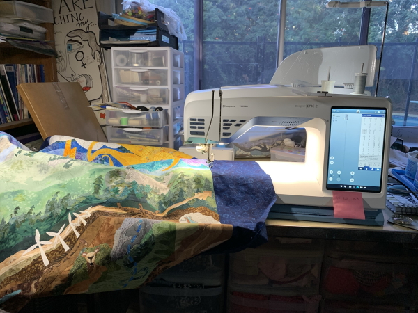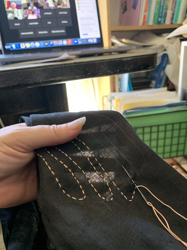And then on Sunday morning, I got up early and took a Zoom class from Judy Coates Perez for Craft Napa…slow-stitching a scarf…ah, meditation.