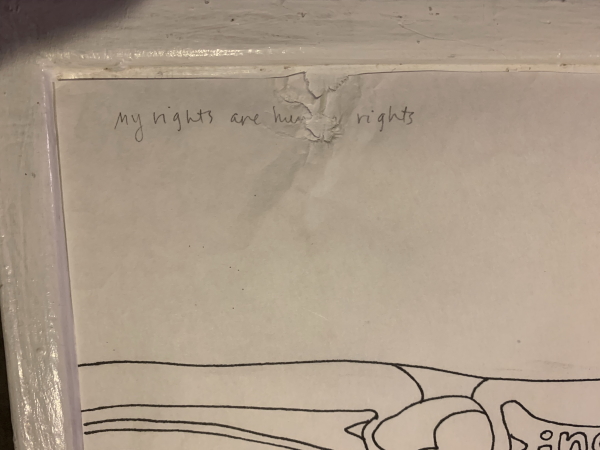 Sometimes I write notes on the drawings as I’m going along…apparently a cat objected to my focus on human rights…