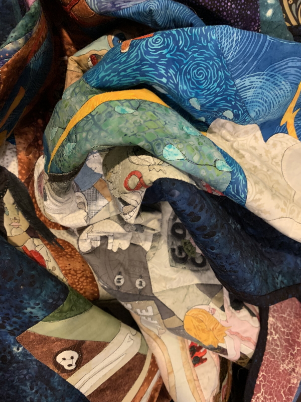 But the topic is stressful to see and feel over and over again, and I need some peace for the next one. Plus it took a long time to make that quilt, probably longer than it should have, because so much other stuff got in the way. I started drawing it in early October and didn’t finish until this week. And that’s it. I didn’t make any smaller quilts in between as filler. Effect of the day job, yeah? And the copyediting.