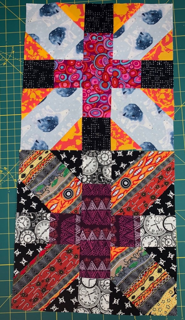 I’m also still doing Molli Sparkles’ Cut-It-Up quiltalong. This is block 4, can’t remember what it is…hang on…