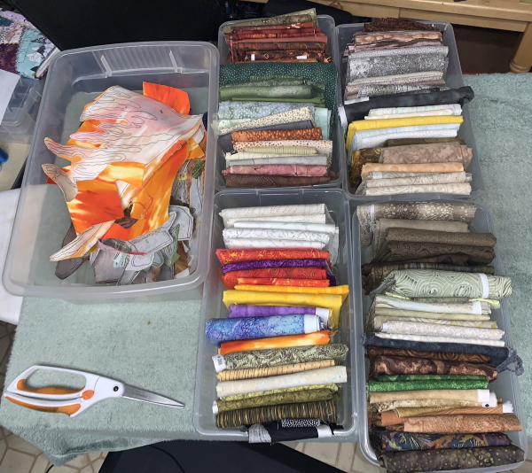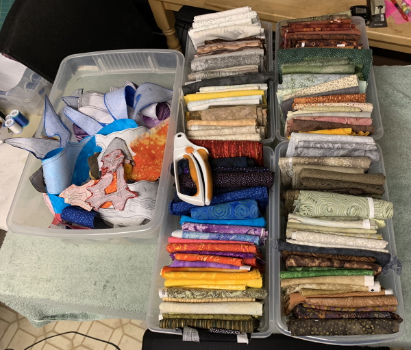 I often reuse fabrics in a quilt for continuity. That’s why I keep them all together until the quilt is finished.