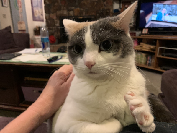 Check out that paw. And then the computer took her place. She was nice. Grading until 10:37 pm? Not so nice.