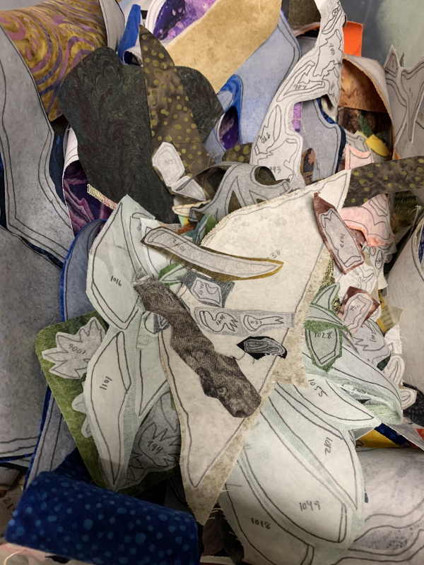 They seem to really like the piece…I hope they enjoy her. The California Center for the Arts show is now closed; I brought home the other two pieces. There’s still one of mine at Visions Art Museum, and in April, there will be two more. I’m also going to be doing a Lightning Talk for the SAQA conference, so I’ll be working on that in the next few weeks…I thought I would have through the end of the month, but apparently not. Yikes. And I’m finishing up my copyediting job this week, as soon as I finish grades today. Deep breaths. Everything will get done. Everything will get paid for. I might even end up with some extra to put into savings. One can dream. Thanks to all who support artists though! We appreciate you.