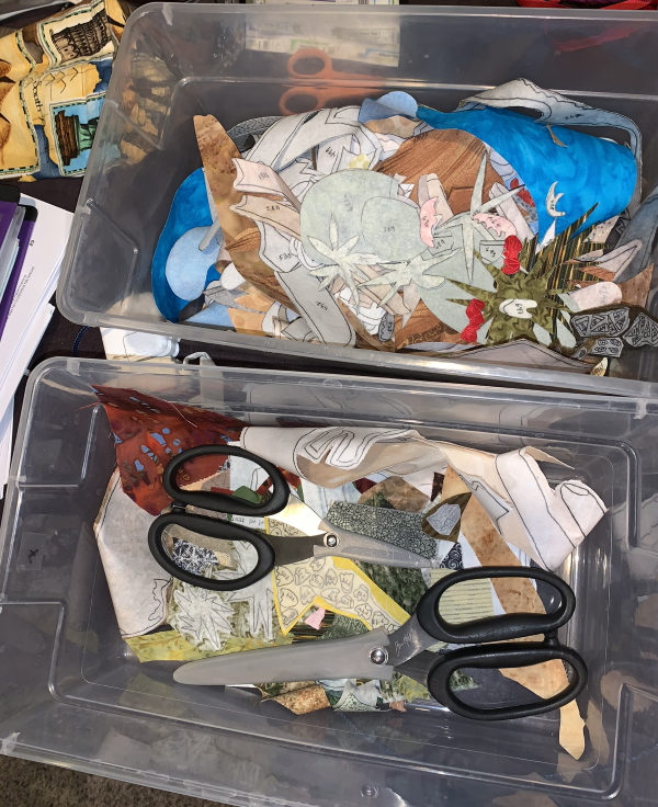 They seem to really like the piece…I hope they enjoy her. The California Center for the Arts show is now closed; I brought home the other two pieces. There’s still one of mine at Visions Art Museum, and in April, there will be two more. I’m also going to be doing a Lightning Talk for the SAQA conference, so I’ll be working on that in the next few weeks…I thought I would have through the end of the month, but apparently not. Yikes. And I’m finishing up my copyediting job this week, as soon as I finish grades today. Deep breaths. Everything will get done. Everything will get paid for. I might even end up with some extra to put into savings. One can dream. Thanks to all who support artists though! We appreciate you.