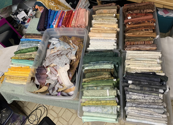 Here’s all the fabrics I used. A TON of browns, greens, grays, and other earth tones.