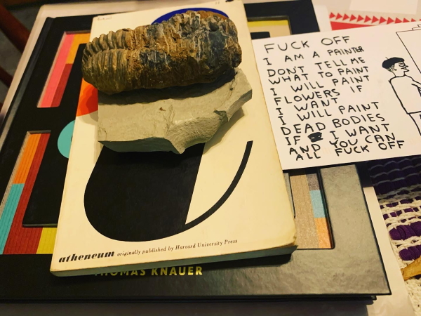 And postcards from the girlchild…plus a truly impressive trilobite from the boychild. I suspect they have my number, as it were.