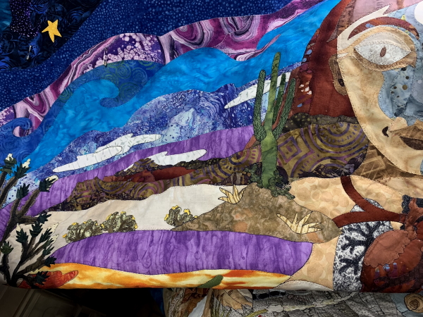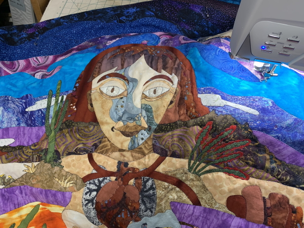 Meanwhile, I have overlapping quilt stuff this weekend, plus I’m going to need binding for this quilt…which is a good problem to have. I’m almost done with the detailed part of it…haven’t had much time at night because I’ve been grading shit. But I finished the left side of the arm and head…