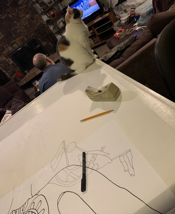 Nova helping to hold the drawing in place.