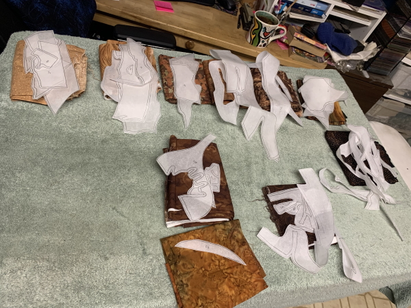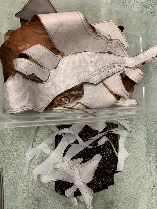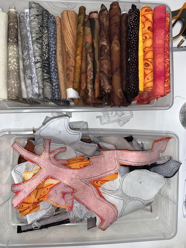 I have been dragging myself off the couch to work on the art quilt…started picking dirt fabrics on Monday night…