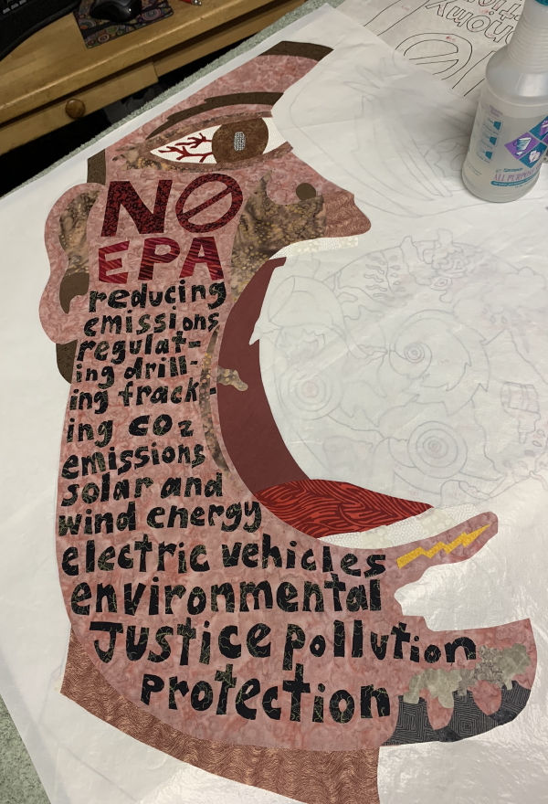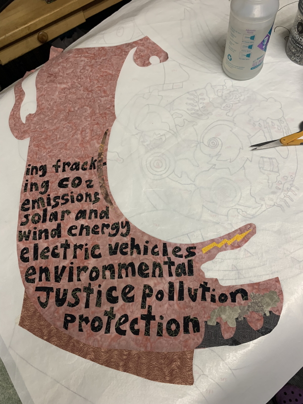 The next step is the main figure’s torso, I think. I’m around piece 570 or so. Not even halfway. The Man has a show tonight, so I was going to go see that. Tomorrow is a bunch of quilt stuff. The next day is an art opening. Busy weekend. But hopefully I’ll get some more done. Slow but sure.