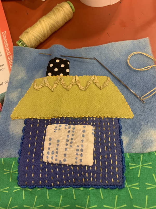 Slow as molasses on this. And god forbid I actually measure and mark like she suggests. I’m pro-wonky in hand-stitched stuff. Good thing, because wonky it is.