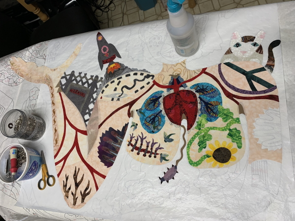 Also finished a rocket and a cat. Tonight will hopefully be the left arm (on the right side). I was wrong about whatever pieces I said I was on the other day. I’m now in the 900s, but barely, so I must have been in the 700s on Sunday night. This is not fast. I’m working too many hours for the day job. It’s double everything, double plan, double labs, double thinking. Art at least was a repeat each trimester, and the art teacher and I had a basic plan I was working from. Now I have almost nothing…a curriculum that is confusing and repetitive with a subject I’m honestly not that good at. Fun. I did do two cover pages last week…well, I’m still not done with one. I finished 8th grade yesterday…
