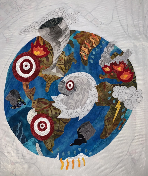 Then there’s the head and upper torso of the main figure with the arms, then the lower torso with the rest of the three figures and the body of one of the big heads. They’re all attached in some way. It’ll be a challenge. It’s not a small piece, so doing it on the ironing board won’t work. I finished the Earth last night…