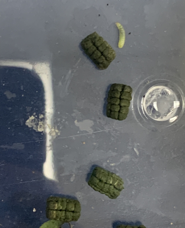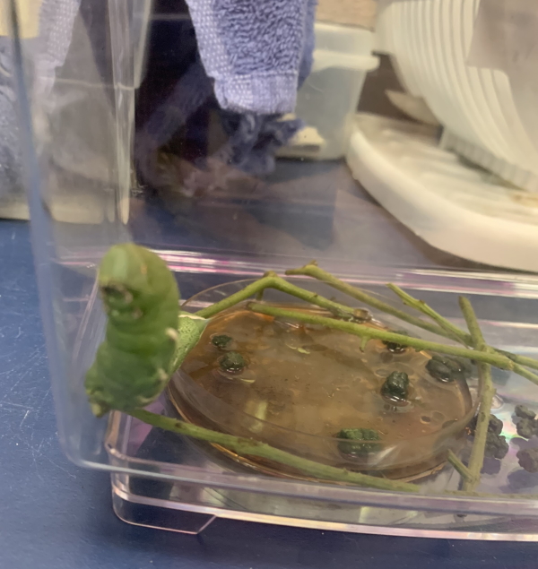 So you could see it. It’s actually sort of star-shaped. AND do you see the other caterpillar? I did NOT see it, which means it is currently in my trash. Ah well. Can’t save all the parasites.