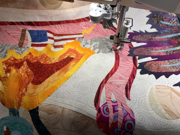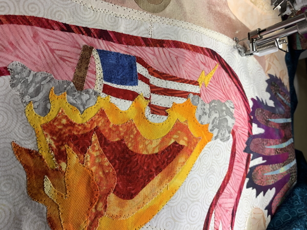 So this may explain my slow status of the stitchdown. I’m not starting until after 9:30 PM most nights, and I need to go to bed at 10:30 or I don’t get enough sleep, so last night, as I was stitching and looked up and it was 10:38, you can imagine how this is going.