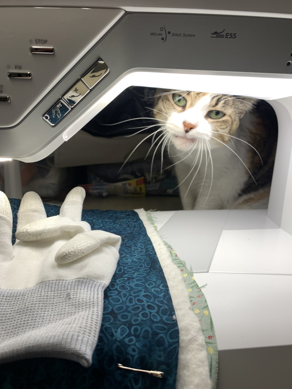 Someday I will probably sew this cat into a quilt because she’s messing around back there. Hasn’t happened yet. Lucky cat.