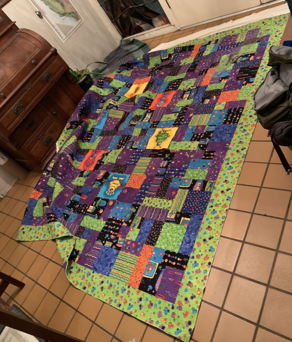 Good morning, ye who have probably slept. Well done you! The crazy brain shenanigans plus coyotes and puppies who think they need to vanquish them, plus the remaining phlegmy cough of my bedmate…sigh. That said, things are progressing here. I finished quilting finally! A miracle, to be sure.