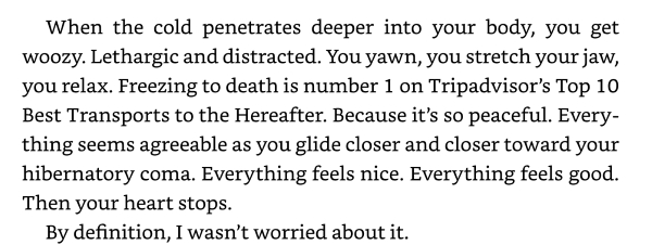 I finished a book…not gonna recommend it. It was OK. But I liked this…