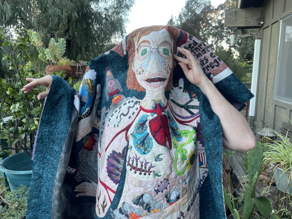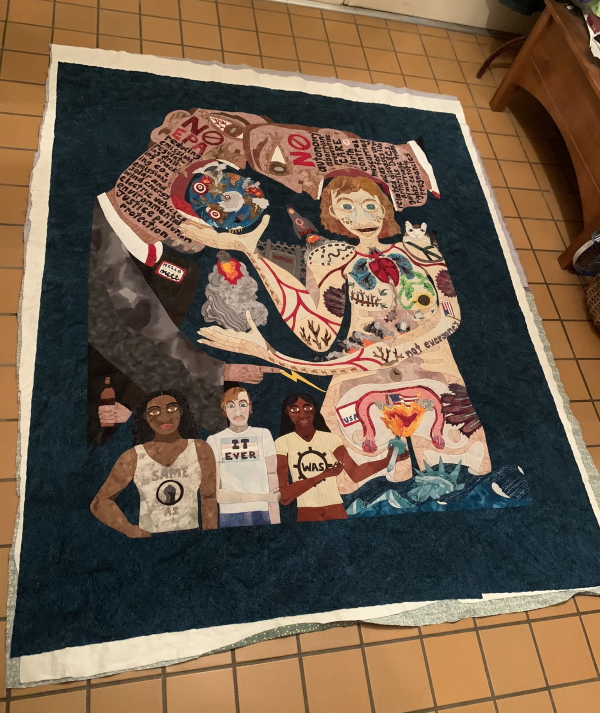 Originally, I was like, oh let’s do an art quilt for this challenge, and then the Man realized that the body fit right where I was (she’s a little taller)…