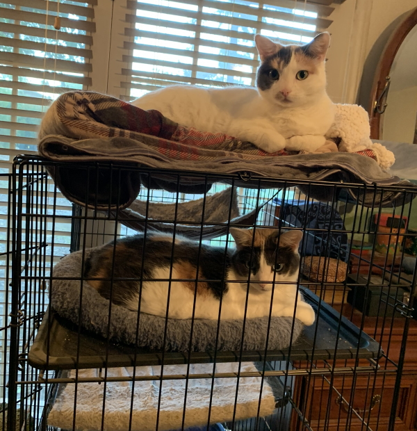 Someone asked about Nova and Luna…they’ve been hiding while Katie (my parents’ dog) was here. Although Katie is pretty chill in her older age, these two still aren’t fans. So we moved their cage into the bedroom to give them a safe space. I did catch them on Sunday hanging out though…