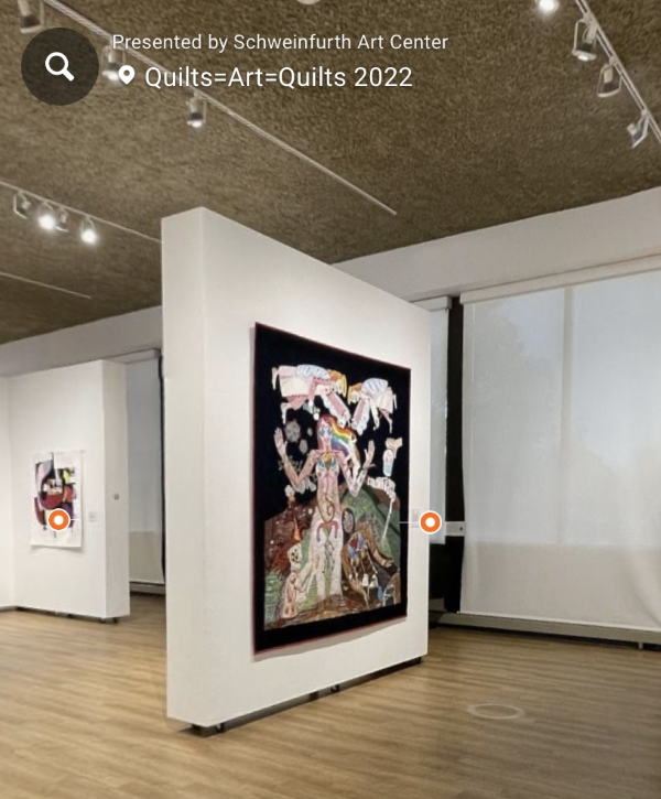 Quilts=Art=Quilts is up at the Schweinfurth Art Center. You can see the whole exhibit here. I screenshot a couple of shots of my quilt.