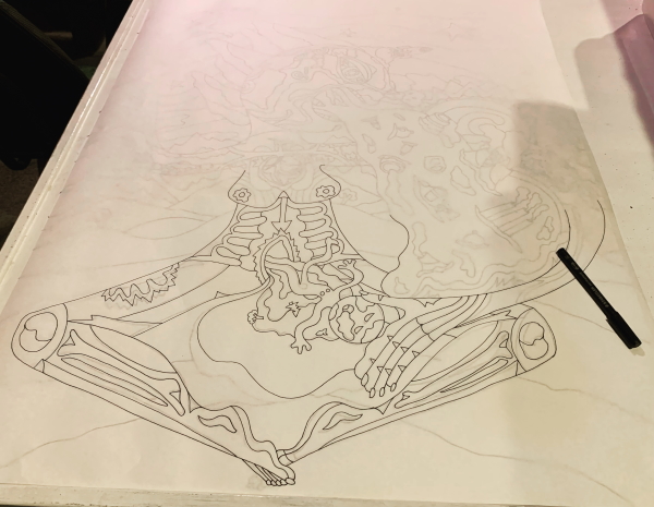 There are some parts of it that need refining and some that just need changing (the top hand needs a purpose…and Monday night at 11:45 PM, I stopped trying to fall asleep and typed the purpose into my phone so I wouldn’t forget). So I started tracing over the bits that work…refining some as I went…
