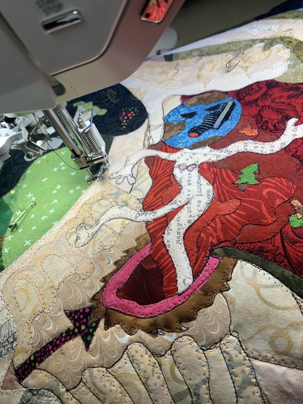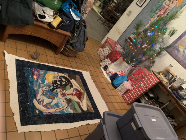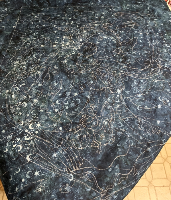 I need to figure out if I have enough of something that will work as binding fabric or if I need to find the energy to go to the quilt store this afternoon. Ugh. Pretty sure I don’t have the energy for that. Then trim and bind.