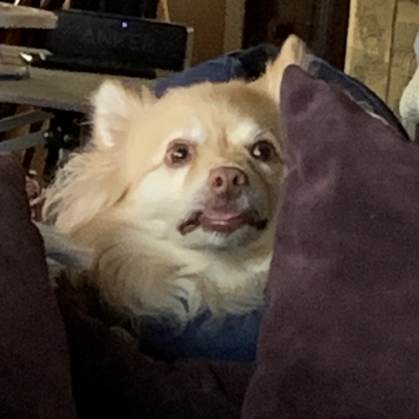Kitten shoved behind me on the chair…