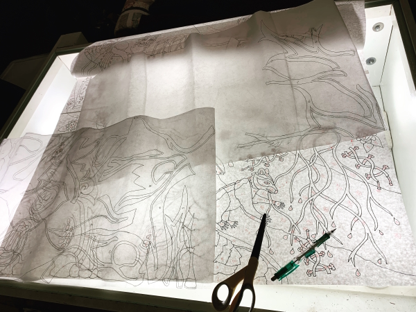 I’ve done a little tracing the last two nights…honestly, not even getting an hour in each night. Starting too late, trying to get back in the habit of going to bed earlier. I started training myself back on the 10:30 bedtime last week, but mostly failed at it. Ah well. Soon the exhaustion will help. Hopefully.
