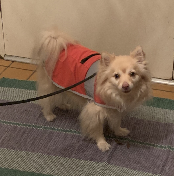 Simba does not like the rain. At all. His raincoat seems to help a little.