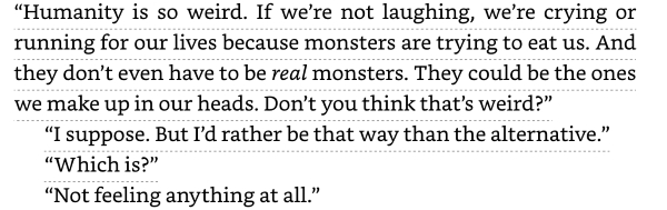 This is from the book I’m really enjoying, The House in the Cerulean Sea…