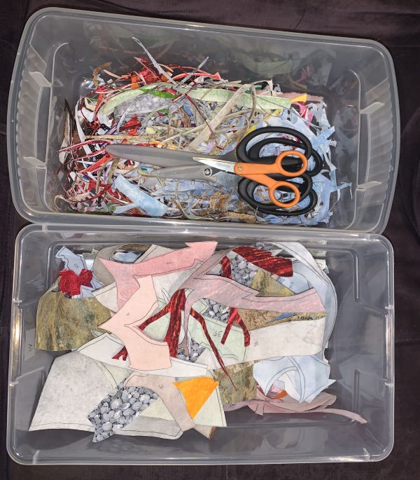 It took 6 hours and 45 minutes over the last week. Tonight I’ll sort them and clean up in the studio a little bit so I can iron. I don’t know if I’ll have the energy to start ironing, but if I don’t tonight, I will tomorrow. Because I don’t have to grade anything tomorrow or lesson plan anything. I will need to at some point during break, but it doesn’t have to be tomorrow. Looking forward to a break from all that work, every day, nonstop, panicking regularly about what the fuck I’m doing in 8th grade. Don’t want to normalize that.