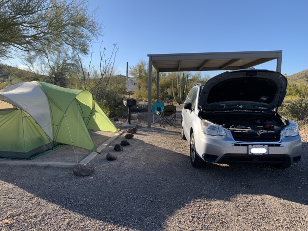 We were lucky to have gotten one of the few campsites with a ramada, which gave shade at certain times of the day, mostly the hot times.